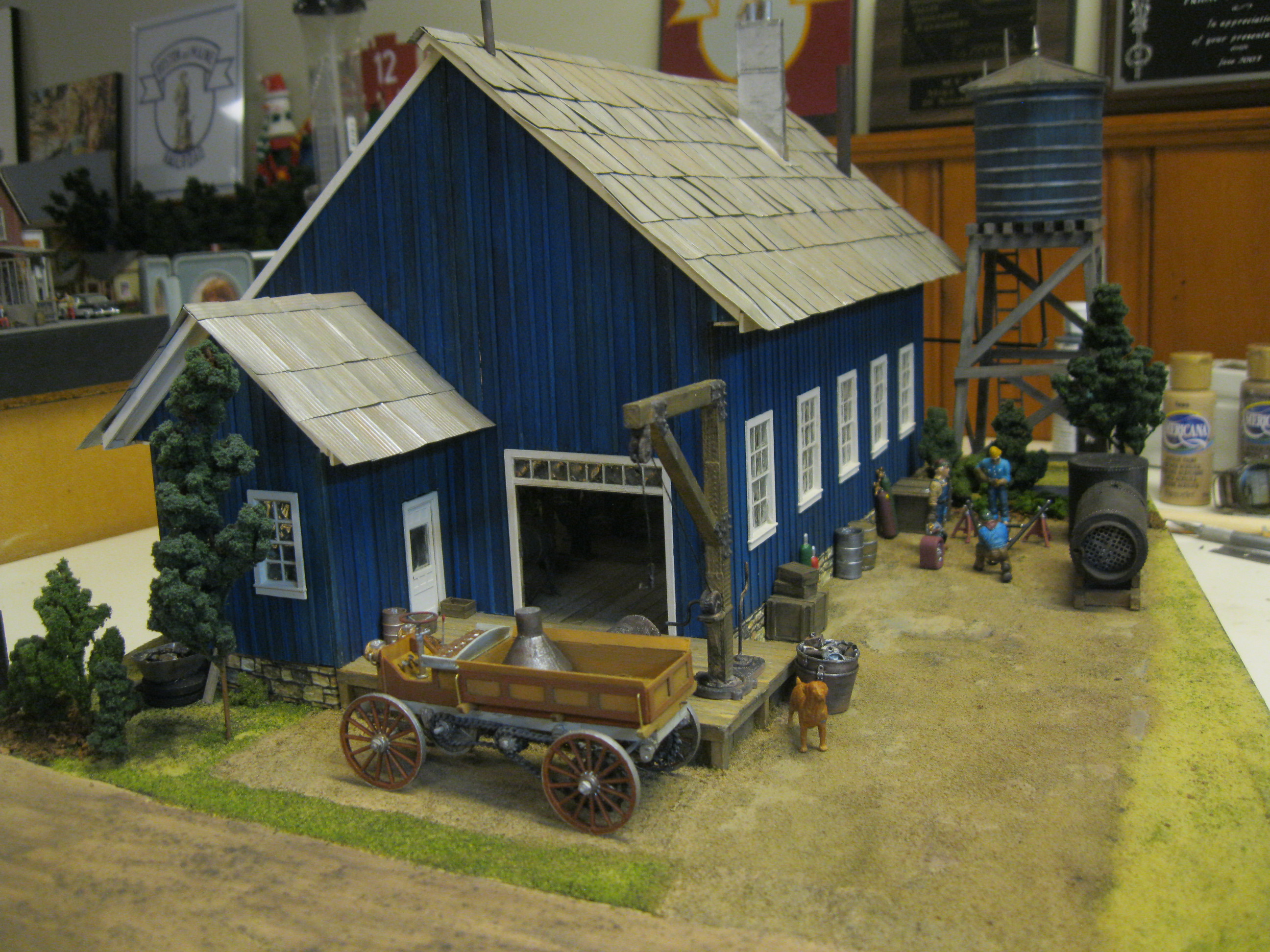 The general store module is in the foreground here. It was built from a Blair Line Models kit.